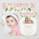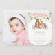 Woodland Animals Pink Floral 1st Birthday Photo Invitation