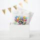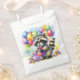 Woodland creatures themed birthday party for a boy or girl child. Watercolor racoon with colourful balloons in green, yellow, orange, pink, purple and blue.