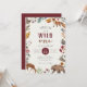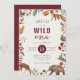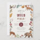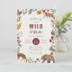 An elegant and chic wild one woodland animal themed invitation designed with watercolor leaves and flowers and animals such as fox, deer, bear, birds and butterflies for first birthday.