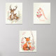 Floral Woodland Animals Nursery Wall Art Set , Watercolor Deer & Fox with Baby + Personalised Monogram & Name
