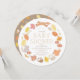 This cute virtual/zoom/online baby shower circle invitation features a cream white background with a wreath of woodland animals which are a fox, bunny, and squirrel, autumn/fall leaves, mushrooms and acorn. The reverse side features a light brown background with autumn foliage patterns. Personalise it for your needs. You can find matching products at my store.