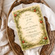 This charming baby shower design features an illustrated woodland storybook frame with twisting branches, delicate blossoms, soft greenery, and a whimsical red apple accent set against a warm parchment background. The vintage-inspired artwork and gentle earthy tones create a cozy, magical aesthetic that feels timeless and inviting, perfect for a storybook-themed celebration with a natural, fairytale-like charm.