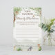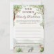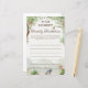 A sweet woodland baby shower advice card featuring soft watercolor greenery and charming forest animals in a warm storybook setting. The squirrel, raccoon, bunny, deer, and bird bring a gentle rustic feel that is perfect for a nature-inspired celebration. Soft earthy tones make this design a lovely choice for a gender-neutral baby shower and coordinated keepsake activities. A meaningful card for guests to share their favorite family traditions and heartfelt words for the parents-to-be.