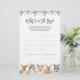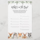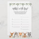 Woodland animals themed baby shower guess what's in the bag game card features a watercolor woodland animals illustration and watercolor greenery eucalyptus garland and elegant handwritten style font.