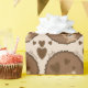 A cute brown baby shower wrapping paper with woodland theme featuring a bear cub and some hearts .