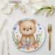 Create a fun and coordinated party table with these cute bear plates featuring soft blue hearts, pastel blossoms, and woodland details. Perfect for boys birthdays and baby showers.