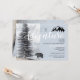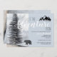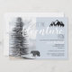 Adventure awaits, rustic woodlands bear boy's camping birthday party invitation in soft pastel grey blue hues, with a majestic forest pine tree and mountain silhouette. Personalise for your boy's birthday.