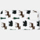 A pattern with a brown moose and black bear and a tree.