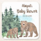 This neutral baby shower paper coaster design features beautiful Hygge styled mum and baby bears in a woodland forest scene.