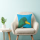 This throw pillow features a woodland mallard duck drawn in marker and vibrant blue background. See our store for more bird-themed cabin decor.