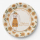 Decorate your whimsical woodland celebration with this charming baby shower paper plate. It showcases a sweet hand-drawn bunny rabbit in a mustard dress surrounded by a warm earthy floral pattern. This design is ideal for parents hosting a forest-themed party for a new arrival.