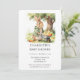 Celebrate your little one on the way with this adorable woodland bunny baby shower design! Featuring a sweet watercolor bunny wearing a cozy green jacket, pushing a wheelbarrow filled with fluffy chicks and fresh carrots under a leafy tree, this charming illustration creates the perfect storybook feel. Ideal for rustic, woodland, spring, or gender-neutral baby showers, this design brings warmth and whimsy to your special celebration. Customize with your event details to create a memorable invitation your guests will love.