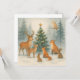 Share the magic of the season with this elegant woodland Christmas card. A festive tree decorated with golden ornaments glows in a snowy forest as deer, foxes, rabbits, and an owl gather together in harmony.