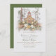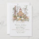 Beautiful Woodland forest with pine trees, rustic church, and neutral tans, soft green, mustard yellow and pale blush foliage and dried flowers on a faux, very light grey background. The back is a forest greeh background. Perfect for a wedding with a nature mountain side feel. Need help with the layout, just email me with the link to tkatz@me.com