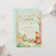 "Woodland Creatures Animals Deer Fox Rabbit Owl Art Invitation." Sweet and whimsical forest animals were painted in watercolors by internationally licensed artist and designer, Audrey Jeanne Roberts. A background of soft mint green background and woodsy oak tree forest setting for a gender neutral design. Copyright.
