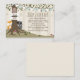 Baby shower book request cards featuring an illustration on front of a fox and a racoon under a tree with green leaves and blue and white bunting.