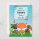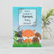 Woodland creatures forest animals, fox, racoon, hedgehog and squirrel. Personalise this invitation by adding your information onto this cute teal blue aqua and black coloured baby boy baby shower invitation in the customise area.