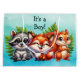 Baby shower or new baby gift bag. Adorable for a woodland creatures or forest animals themed boy's baby shower or for family waiting when a baby is born. Cute cartoon fox, racoon, deer, squirrel, skunk, owl, chipmunk and baby deer.