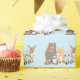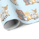 Cute baby shower or birthday gift wrap with a Woodland Creatures theme with raccoons, foxes, squirrels, deer and bear.