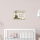 A baby shower poster featuring an illustration of a tree in the forest surrounded by a fox, racoon, and an owl sitting on banner wrapped around trunk that says, "Welcome Baby!" Beige and white bunting hangs among the leaves. Personalise the name. Matching baby shower invitations and coordinating items are available at Jill's Paperie.