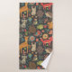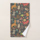 Fox, racoon, squirrel, owl and plenty more woodland friends appear on this whimsical cottagecore aesthetics folk art patterned bath towel set.
