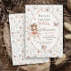 Celebrate your little one’s magical milestone with this whimsical fairy first birthday invitation. Adorned with soft watercolor dandelions, a butterfly, and delicate wildflowers, the design captures a dreamy enchanted forest vibe. A sweet fairy ballerina in blush pink tones twirls among subtle greenery and boho garden details, making this invite ideal for a woodland, cottagecore, or summer fairy theme. With elegant fonts, a soft blush and peach palette, and a light, airy style, it sets the tone for a truly charming and magical celebration.