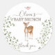 This whimsical pastel woodland themed design features soft watercolour deer and delicate arching vines. Perfect for your baby's special celebrations.