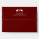 Festive holiday garnet red envelopes coordinate beautifully with our modern rustic Woodland Deer holiday card collection. Design features your return address on the back flap in white lettering with a pair of buck deer silhouette illustrations joined by a single Nordic style snowflake. Lined in a subtle pattern of black and white dotted diamonds.