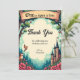 This elegant fairytale-style birthday thank you card is perfect for a modern birthday. The retro design features a vintage enchanted forest, a castle illustration, and black calligraphy on a storybook-themed background.