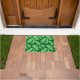 Doormat in a woodland fern silhouette pattern adapted from vintage botanical illustrations, digitally rendered and coloured, in deep emerald green and soft pastel green
