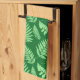 Kitchen towel in a woodland fern silhouette pattern adapted from vintage botanical illustrations, digitally rendered and coloured, in soft pastel green on deep emerald green