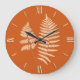 Woodland Fern Pattern, Pastel and Deep Orange Large Clock