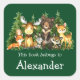 Watercolor Woodland Forest Animals and Pine Trees Bookplate Labels. Baby Animals include Bear, Deer, Moose, Racoon, Bunny Rabbit, Fox and Owl with forest greenery. Add Name.