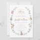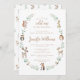 Discover sophistication in our charming baby boy shower invitation, featuring adorable watercolor woodland creatures nestled within a lush wreath of tree branches. With bear, owl, hedgehog, deer, rabbit, squirrel and birds intricately intertwined amidst verdant greenery, this invitation welcomes the arrival of the little wild one in elegant style. Perfect for nature-inspired celebrations, this invitation sets the tone for an enchanting woodland-themed baby shower filled with joy and anticipation.