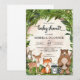 Woodland forest animals greenery wooden slice baby shower invitation,