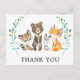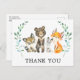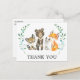 Thank your guests for celebrating the mama to be! This thank you postcard features a watercolor illustration of forest woodland animals surrounded by eucalyptus leaves. Personalise with your information or click "Click to customise further" to edit font styles, size and colours.