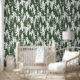 Woodland forest patterns are a popular choice for home décor, fashion, and graphic design. They are chraacterised by their use of natural elements, such as trees, animals, and flowers, and often feature a muted colour palette of greens. Check out this green forest tree design.