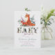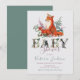 Beautiful Woodland forest with mummy fox and her baby twin foxes with burgundy purple and green foliage on a faux, very light grey background. Perfect for a fall or winter Baby Shower with a nature mountain side feel.