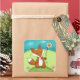 A cute whimsical fox stands on a hill that says, “a little love for you” in the grass line. The fox holds a long-stemmed daisy and wears a heart on his chest. Under the pretty blue sky, you will see the words, “love” written on the horizon of the hill behind him. Perfect addition to a woodland themed room or for someone who loves foxes. Original design by Christie Black of Creations from the Heart.