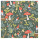 Whimsical green and red woodland themed pattern designed by Shelby Allison featuring tiny gnome characters, mushrooms, flowers and foliage.