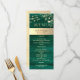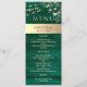 Set a refined tone for your celebration with this elegant modern wedding menu, featuring a rustic wood background paired with deep emerald green tones. Boho-inspired gold floral lace and glowing string lights add vintage charm and sophisticated warmth. Perfect for fall, winter, or outdoor weddings, this menu blends rustic elegance with modern style. Customise with your menu details to create a cohesive and memorable reception tablescape.