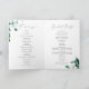 This woodland greenery folded wedding program is perfect for a summer or fall wedding. The modern boho design features lush emerald, sage and olive green watercolor leaves and botanicals with sprigs of elegant white flowers.