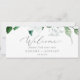 This woodland greenery hanging seating chart welcome header is perfect for a summer or fall wedding. The modern boho design features lush emerald, sage and olive green watercolor leaves and botanicals with sprigs of elegant white flowers. The card prints on the front and back (double-sided). Please check the collection for the coordinating table number seating chart cards.