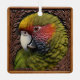 Woodland Harmony: Green Lorikeet On Carved Wood Metal Tree Decoration