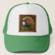 Woodland Harmony: Green Lorikeet On Carved Wood Trucker Hat