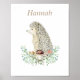 Cute Woodland Hedgehog with forest foliage and mushrooms, personalised poster. Text font style, colour and size can be customised.