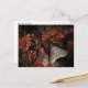 This postcard features a tiny geometer moth. He was spotted in a patch of sunny light on the forest floor in the deep woods. The similar patterns of the wings and leaves create a natural camouflage. The photo is digitally enhanced to bring out the abstract quality of all the textures.