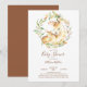 Cute watercolor little deer woodland baby shower featuring a adorable sleeping baby deer with mum framed with a gorgeous green leaf wreath. Perfect for a girls baby shower, boys baby shower or gender neutral baby shower.