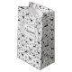 Festive holiday patterned gift bag features a winter pattern of snowflakes and woodland animals, including reindeer and birds, silhouetted in black and white. Personalise with three lines of custom text; shown with "Merry Christmas" and your name.