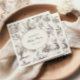At the heart of the design lies an elegant oval frame, providing a graceful border for your baby shower details. This design element adds a touch of refinement, ensuring your announcement stands out with style and clarity. The napkins are completed with vintage-inspired calligraphy, lending an air of timeless elegance to your message. This sophisticated script beautifully complements the whimsical illustrations, inviting guests to join in the celebration with warmth and charm.